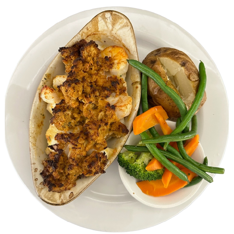 Stuffed with seafood stuffing, served with your choice of starch and vegetable